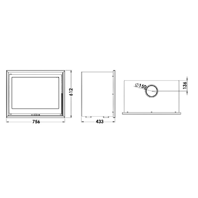 - Dimensions : L 756 x H 612 x P 433 mm