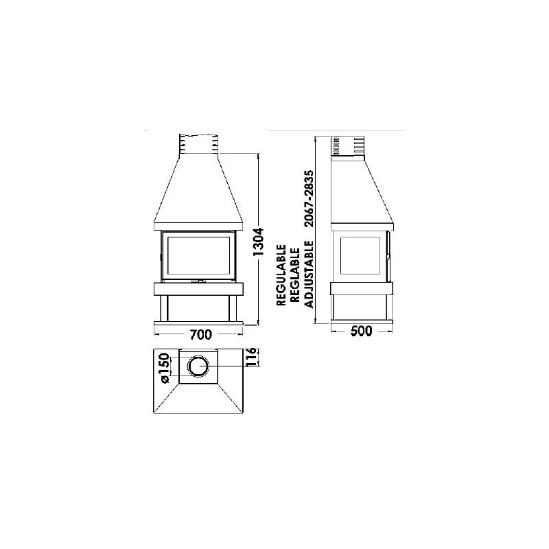 - Hauteur réglable 2067 à 2835mm