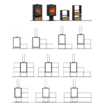 Le module en bois inclus dans le poêle peut également accueillir des bûches jusqu’à 33 cm, sur 2 étages. D’une hauteur de 620mm, les supports de bois de chauffage doivent être positionnés à une distance minimale de 20 mm du corps du poêle (côté droit ou gauche).