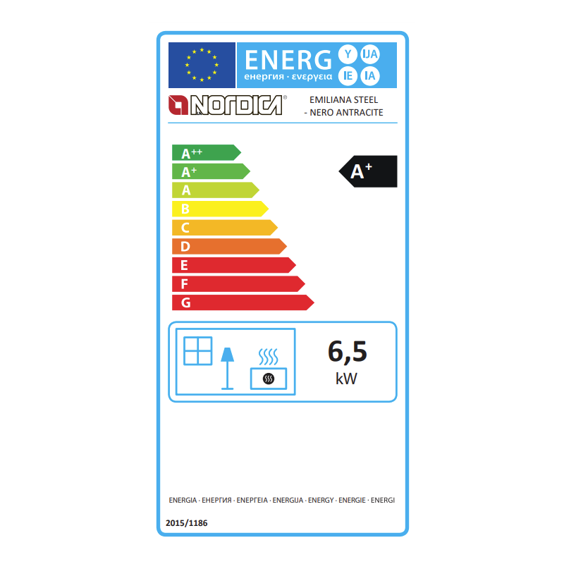 Le poêle à bois Emliana Steel de La Nordica est une solution de chauffage compacte (H95 x L45 x P49 cm) mais puissante. Avec une puissance de 6,5 kW et un rendement remarquable de 88,7%, ce poêle est capable de chauffer efficacement avec une faible consommation de bois.
