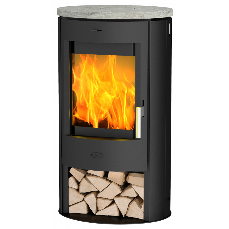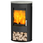 - Pierre ollaire: Ce poêle est équipé sur le dessus d’une pierre ollaire, une pierre thermique qui emmagasine la chaleur et la diffuse pendant une longue période.