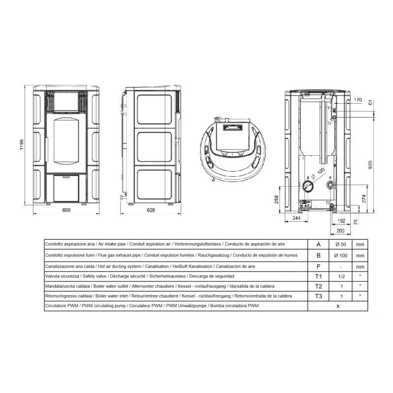 Caractéristiques techniques de le Poêle à granulés hydraulique – EXTRAFLAME Iside Idro H15 18.1 kW